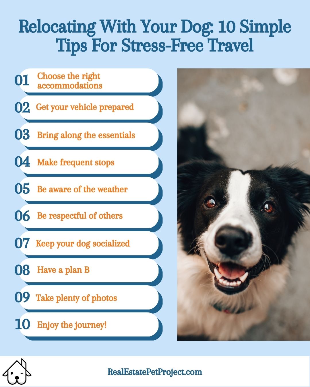 Not all hotels and campgrounds are created equal when it comes to accommodating dogs. Do your research in advance to find the best places to stay with your furry friend. 2.